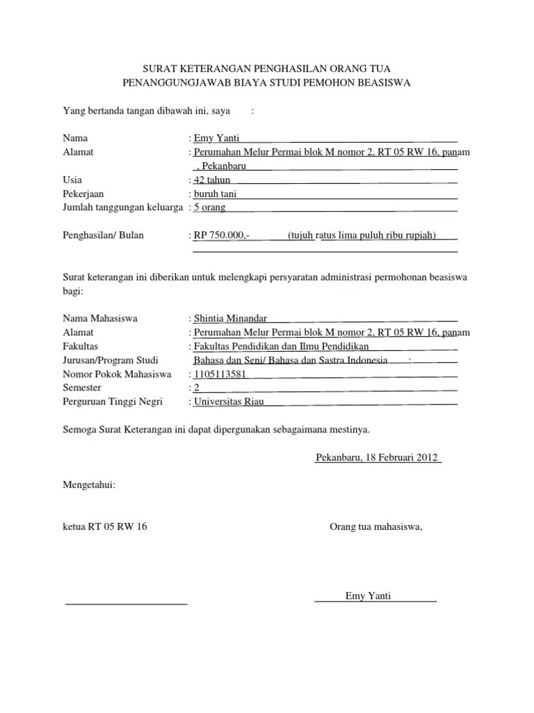 Contoh Surat Keterangan Penghasilan Orang Tua Untuk Ukt Pdf - Contoh Surat Keterangan Penghasilan Orang Tua Untuk Daftar Kuliah / Untuk download surat ini dalam .